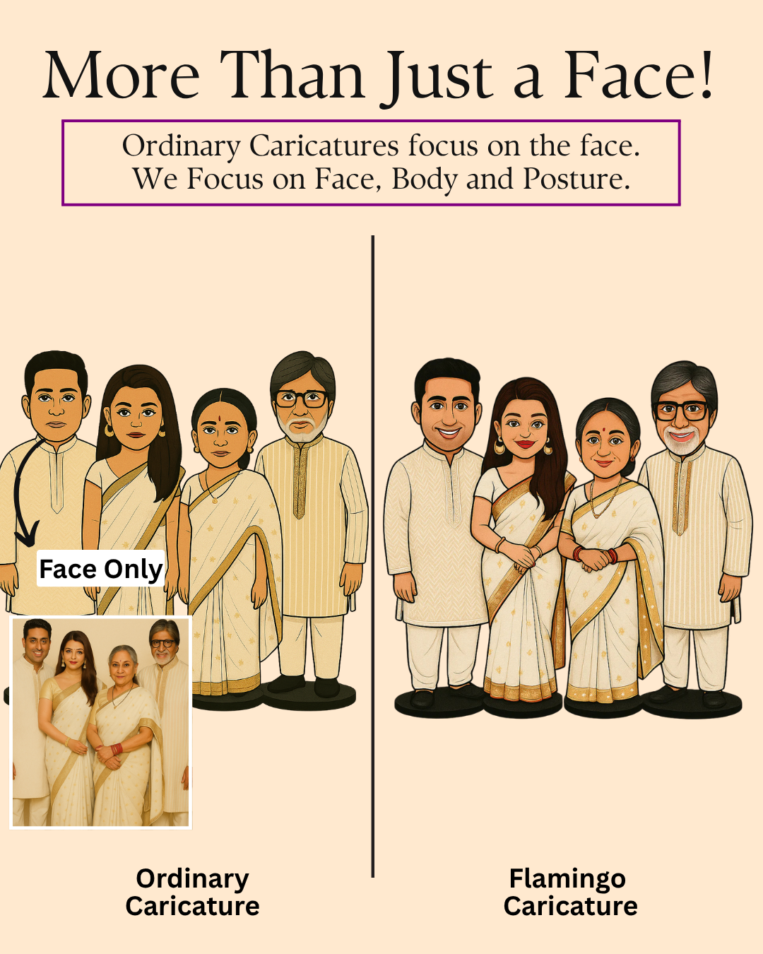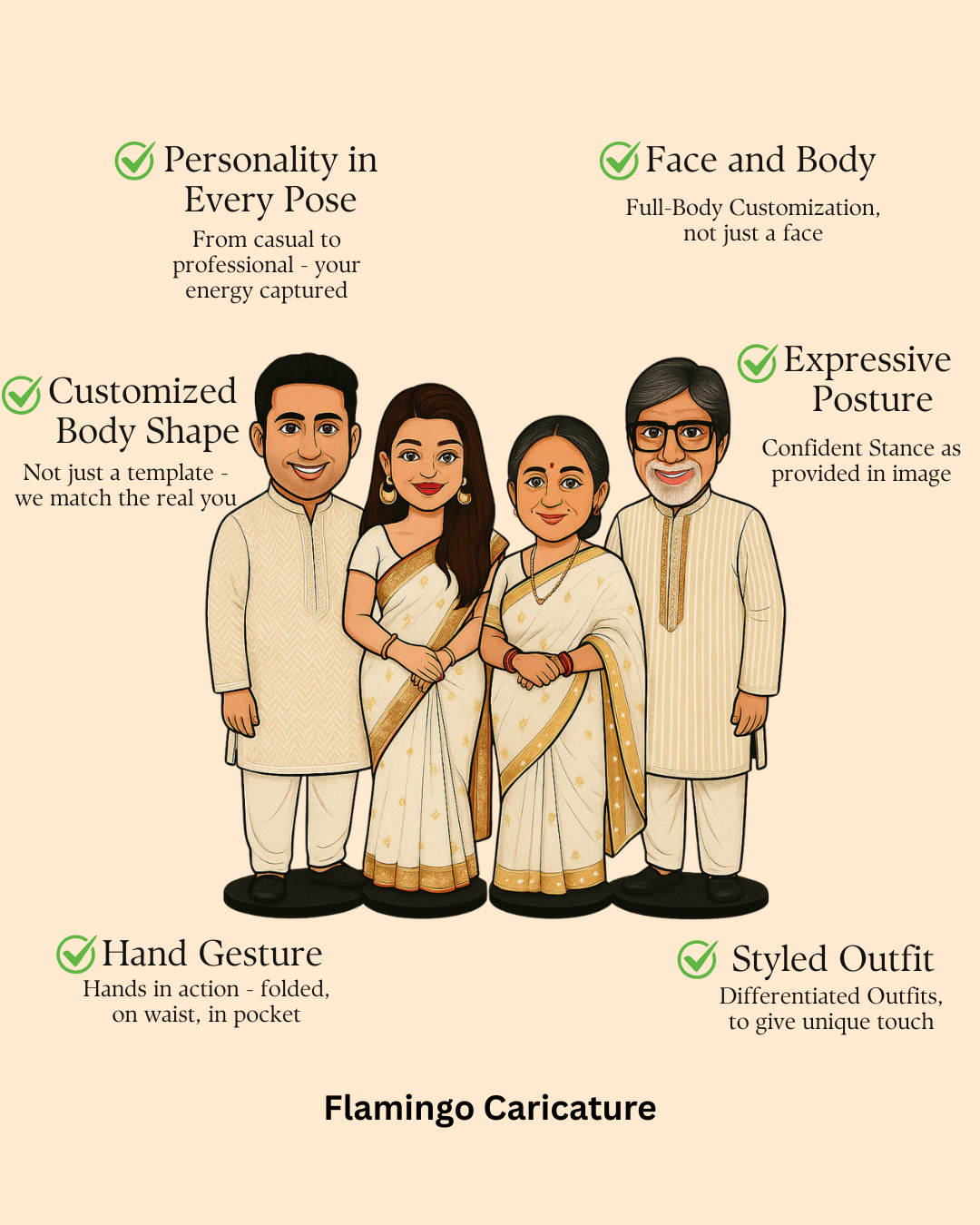 Some moments stay in the heart forever. This Flamingo personalized caricature for a 4-member family keeps those moments alive. It’s more than just a drawing. It shows your love and your bond. It brings your everyday life into a sweet memory.