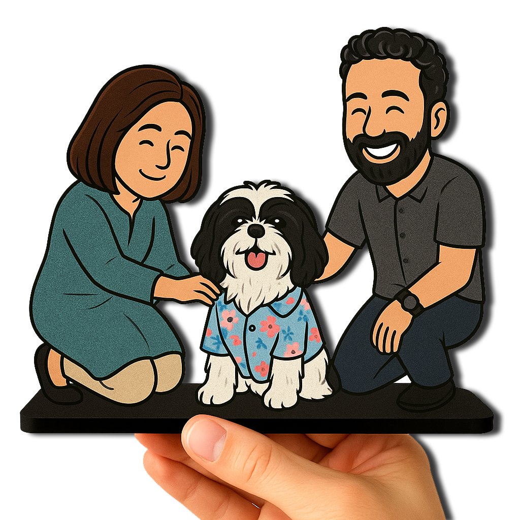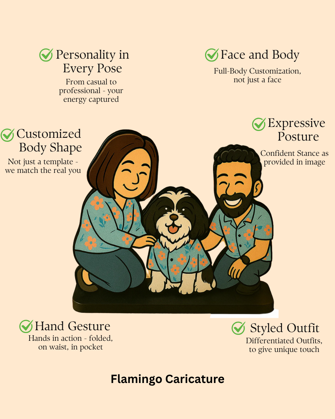 Pets bring so much happiness and love into our lives. This Flamingo caricature of two people with their pets is a beautiful way to keep those precious moments alive.Β