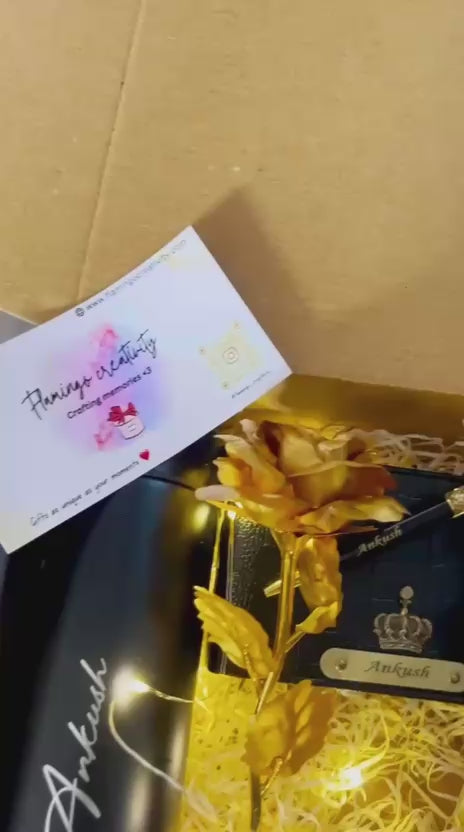 This Flamingo hamper is made to make him feel special. Every item in the box is useful, stylish, and comes with his name on it.Β