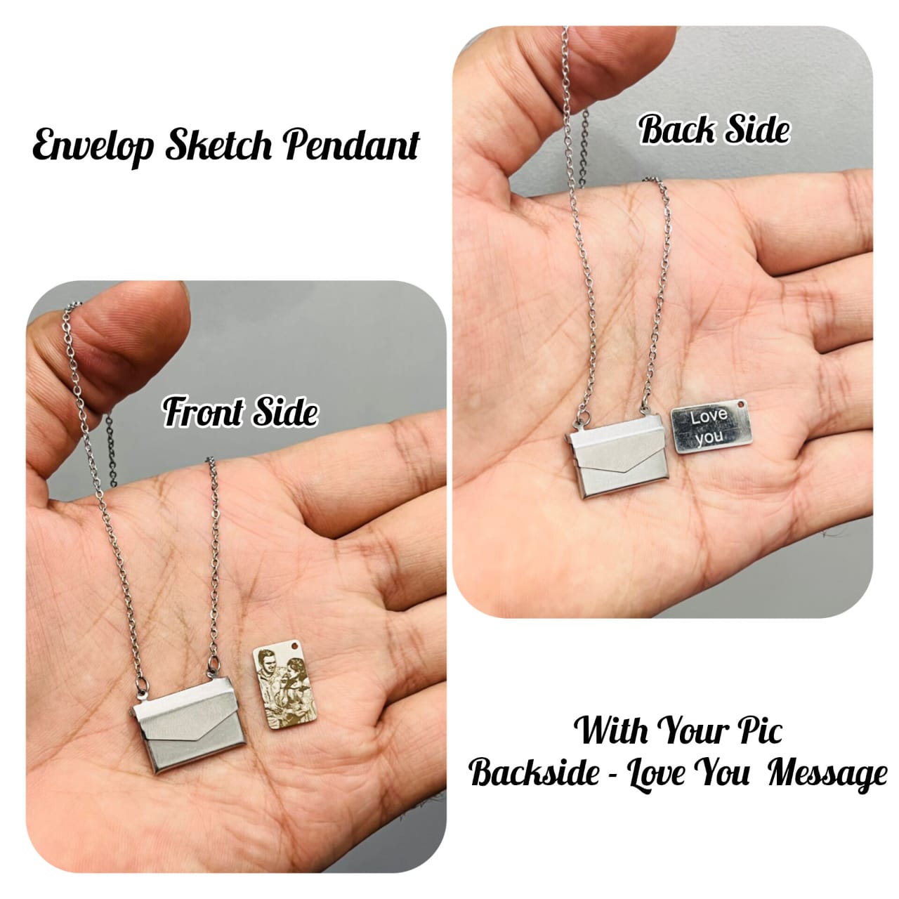 Our Envelope Sketch Pendant is a piece of art that that goes directly to the heart.  This Envelope Sketch Pendant symbolizes love, memories, and the cherished messages we hold close.