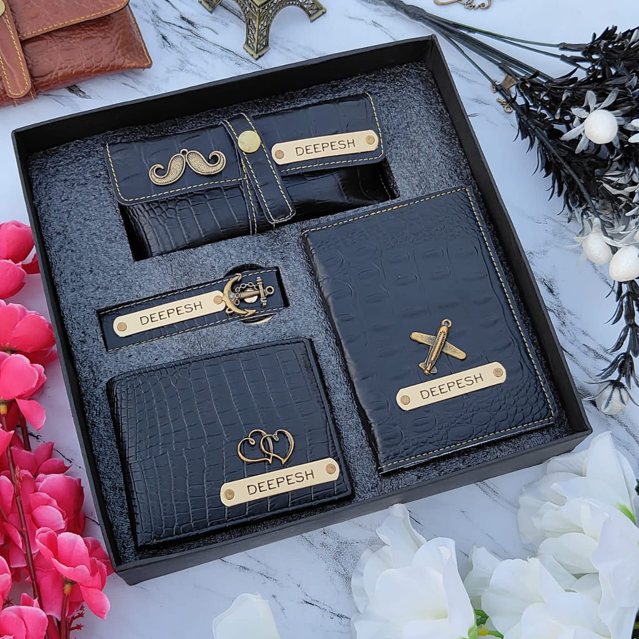 Make someone feel truly special with this Croc Leather 4 PC's Combo. This set includes a Croc Leather Wallet, Croc Keychain, Croc Passport Cover, and Croc Eyewear Case, all designed with love and care.