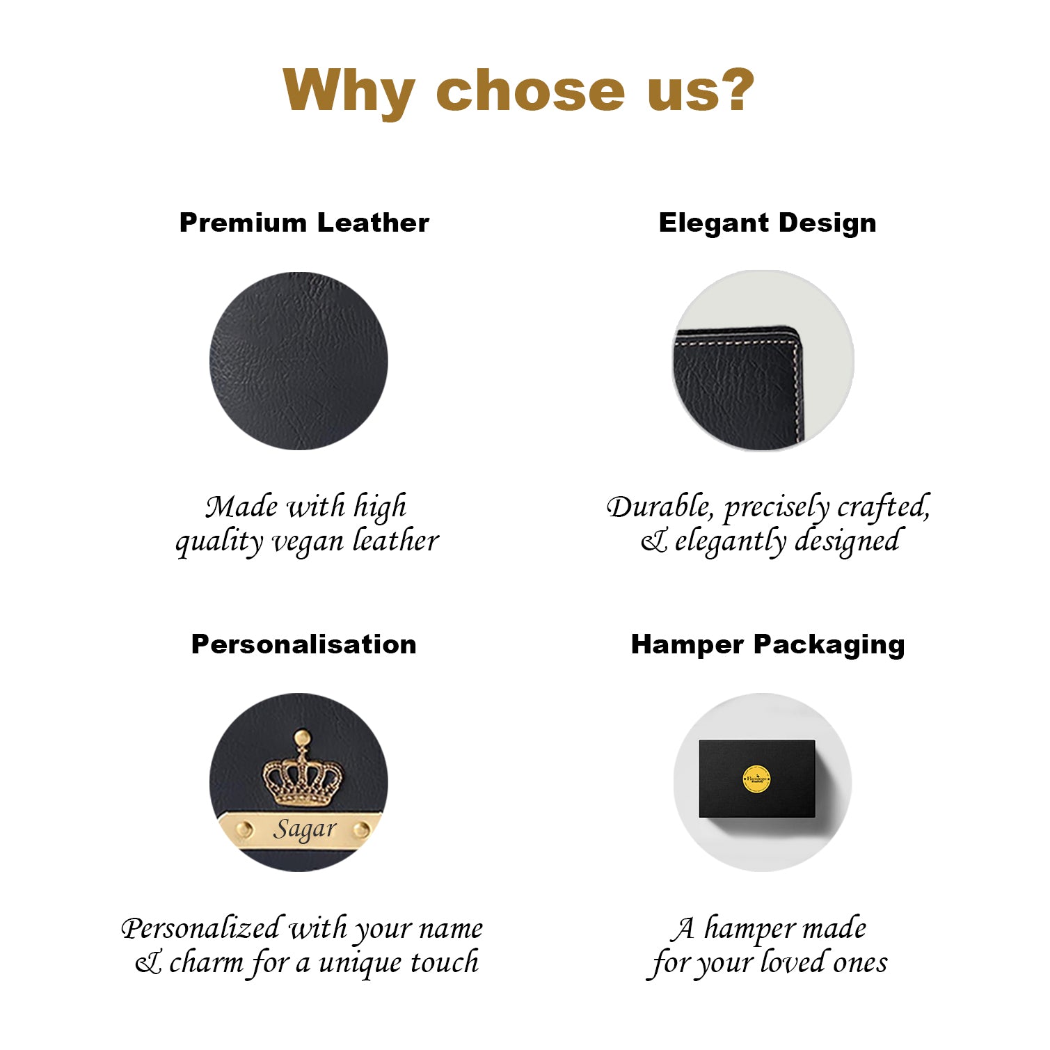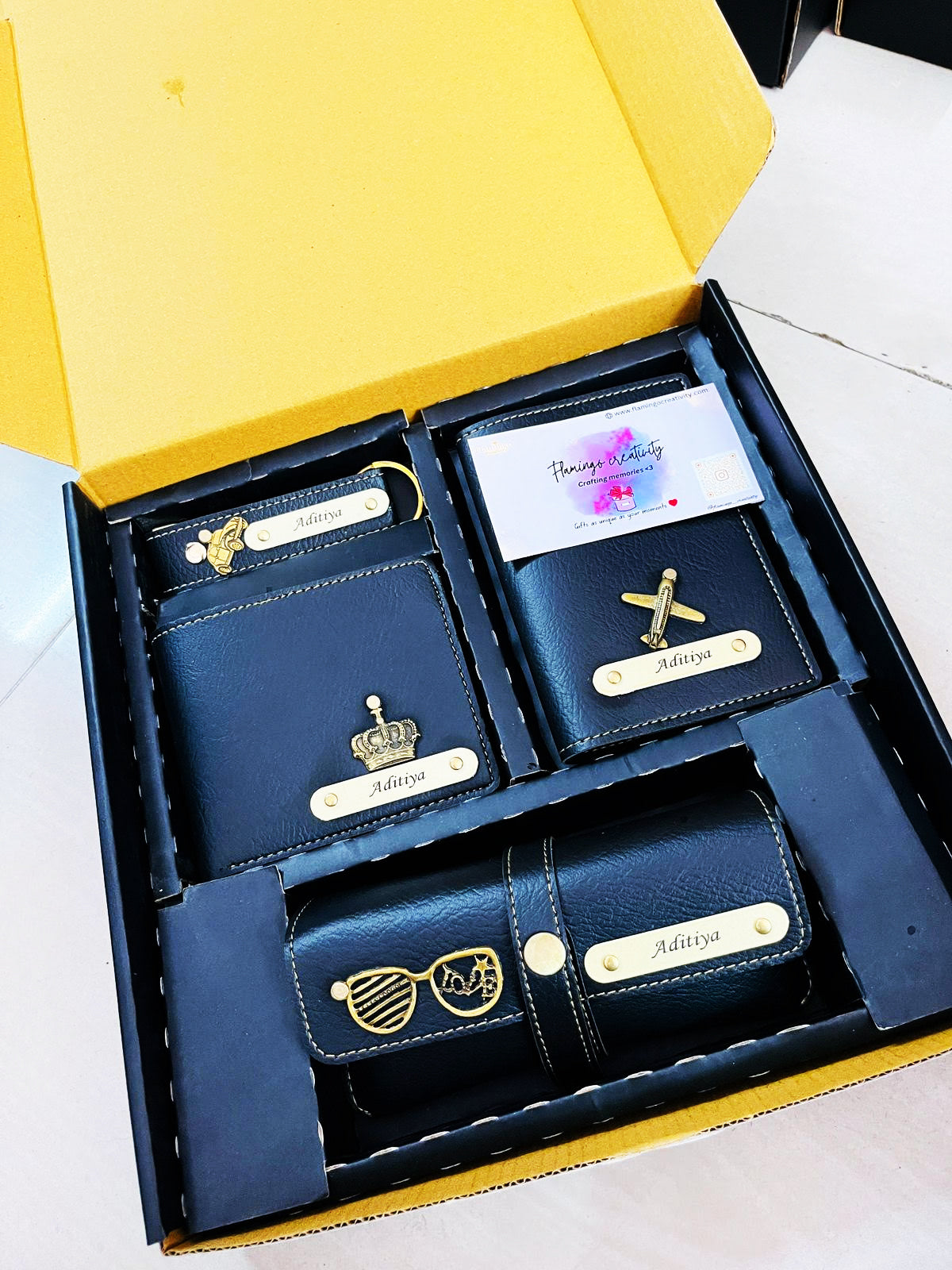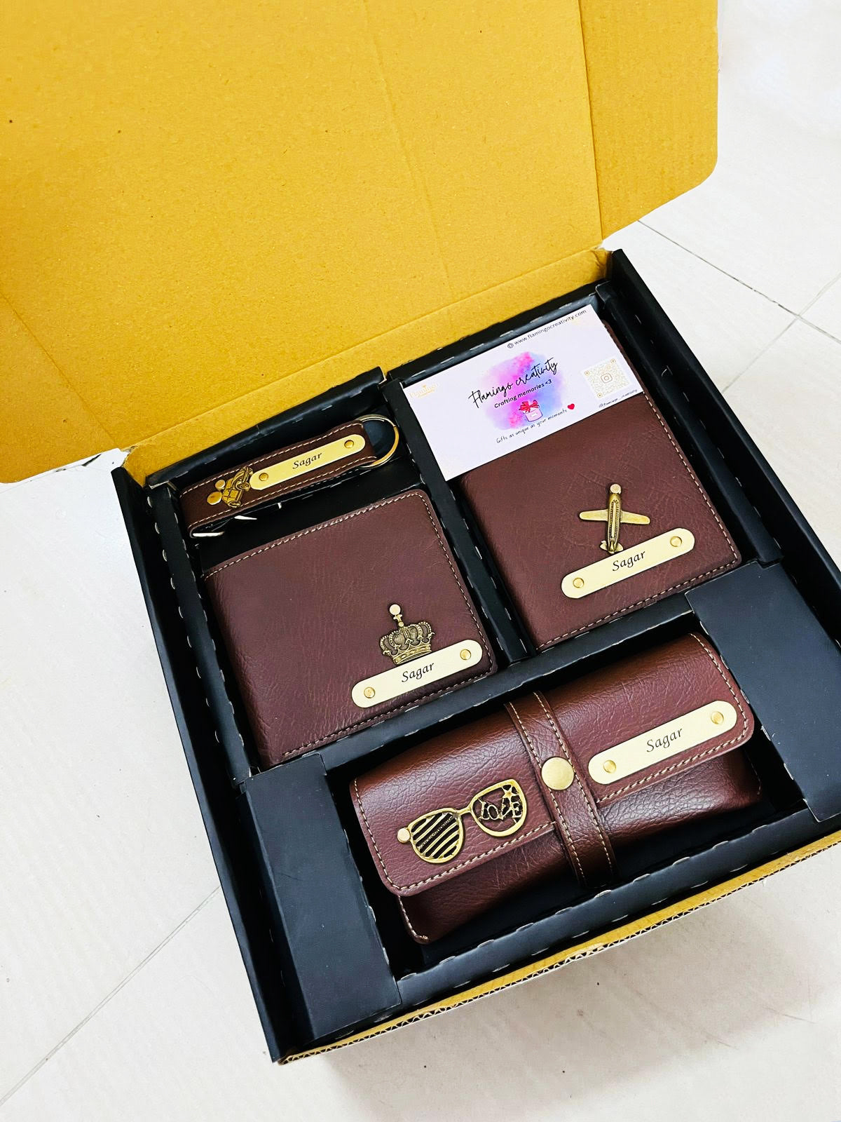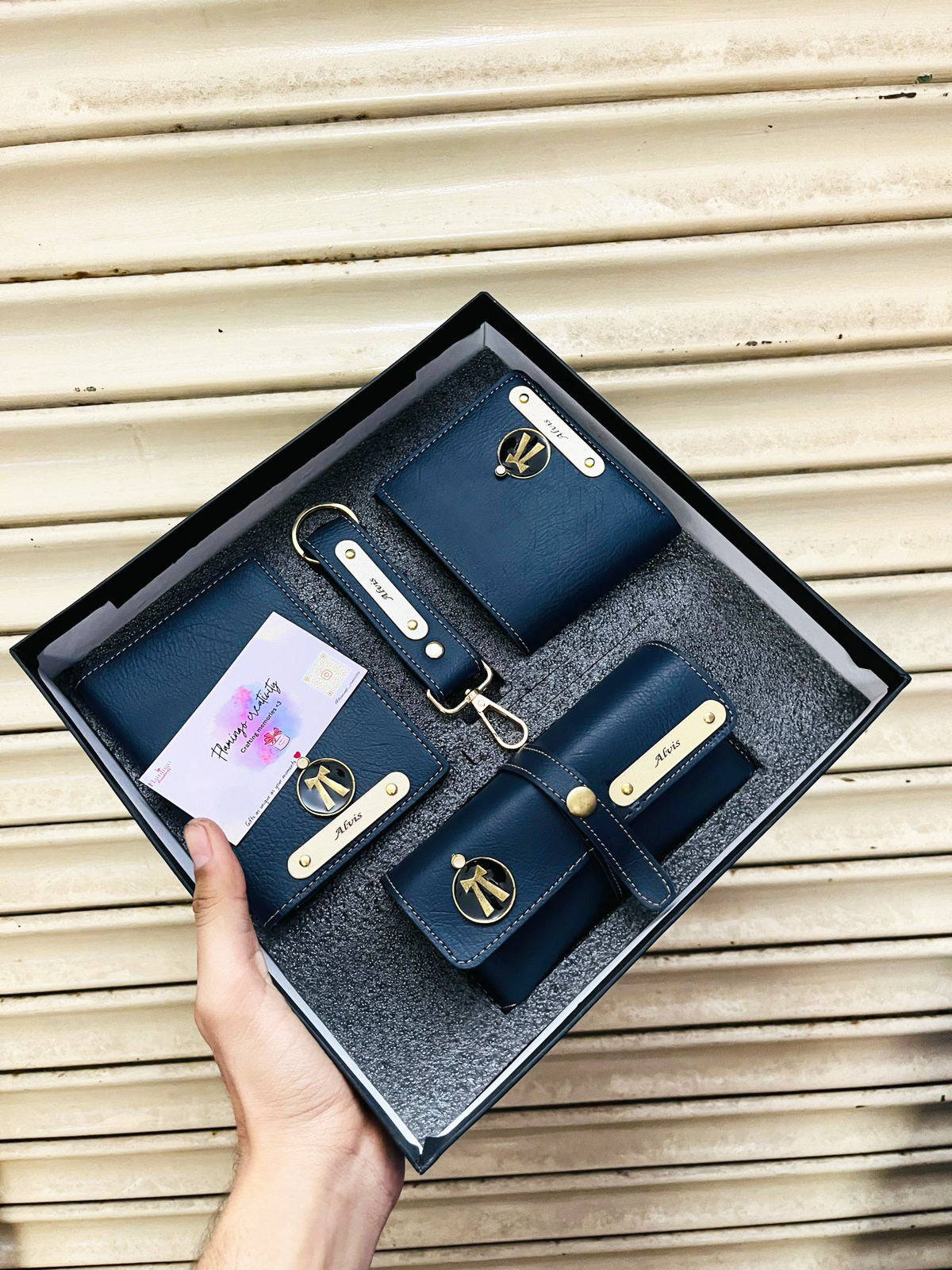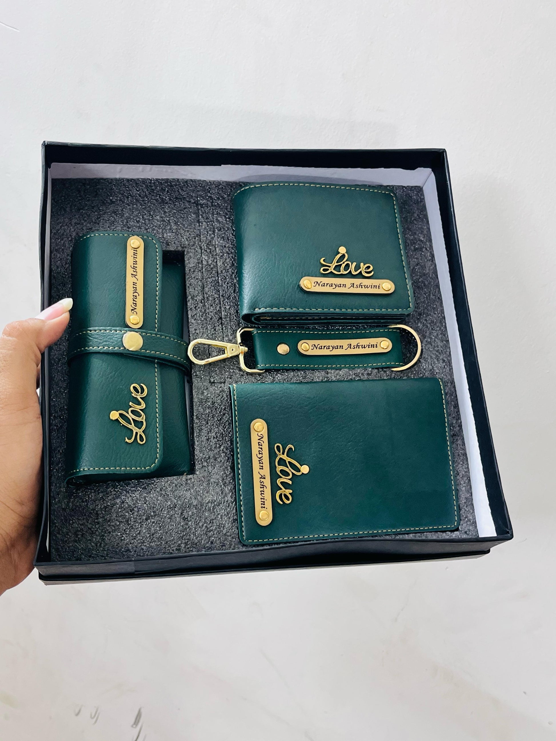 Make someone feel truly special with this Leather 4 PC's Combo. This set includes a leather wallet, keychain, passport cover, and eyewear case, all designed with love and care.