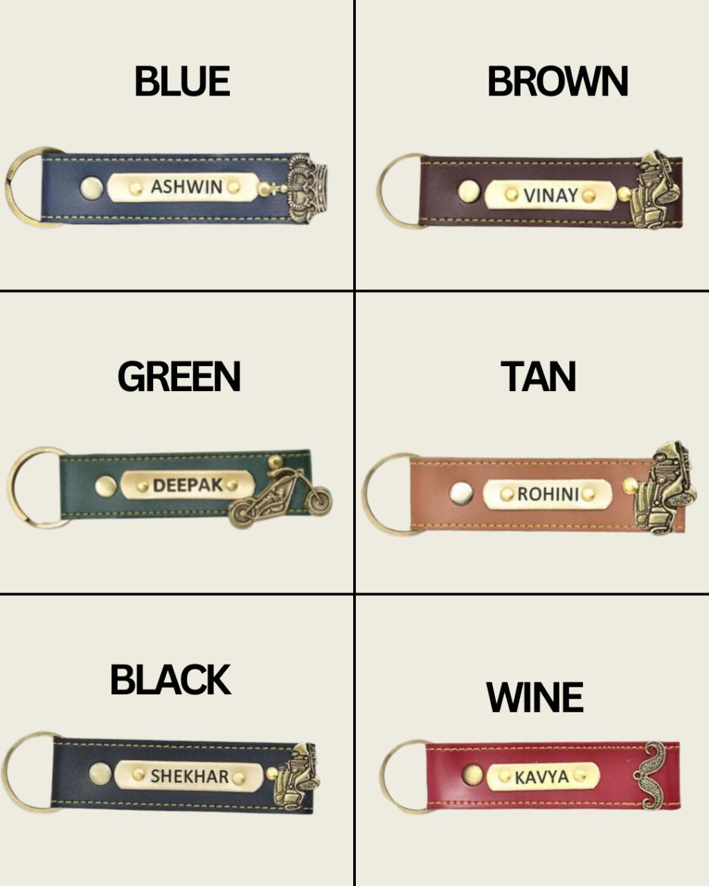 Enhance your look with a Leather Keychain personalised with your name and charm that adds a classy touch to any outfitThis stylish keychain is perfect for everyone, and its sleek design makes it a trendy accessory to keep your keys organized and easy to find.