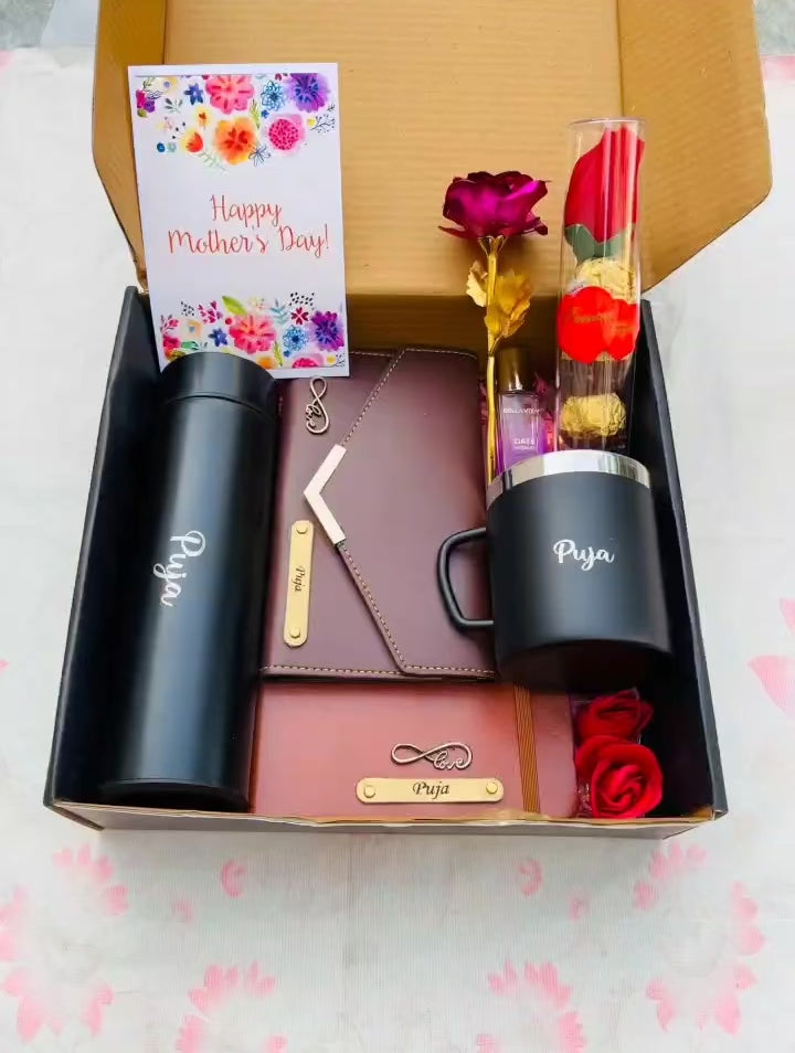 Show your love with Flamingo’s Mother’s Day Leather Hamper. This Leather Hamper includes a temperature bottle, a beautiful clutch, rose chocolates, and more to make her feel special.