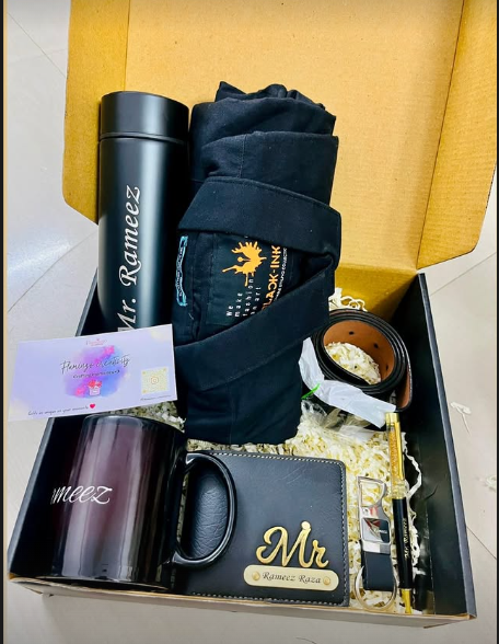 Give him the Flamingo Personalised Hamper. It is filled with amazing gifts. It's the perfect Personalised Hamper for any celebration. This hamper will make him smile.